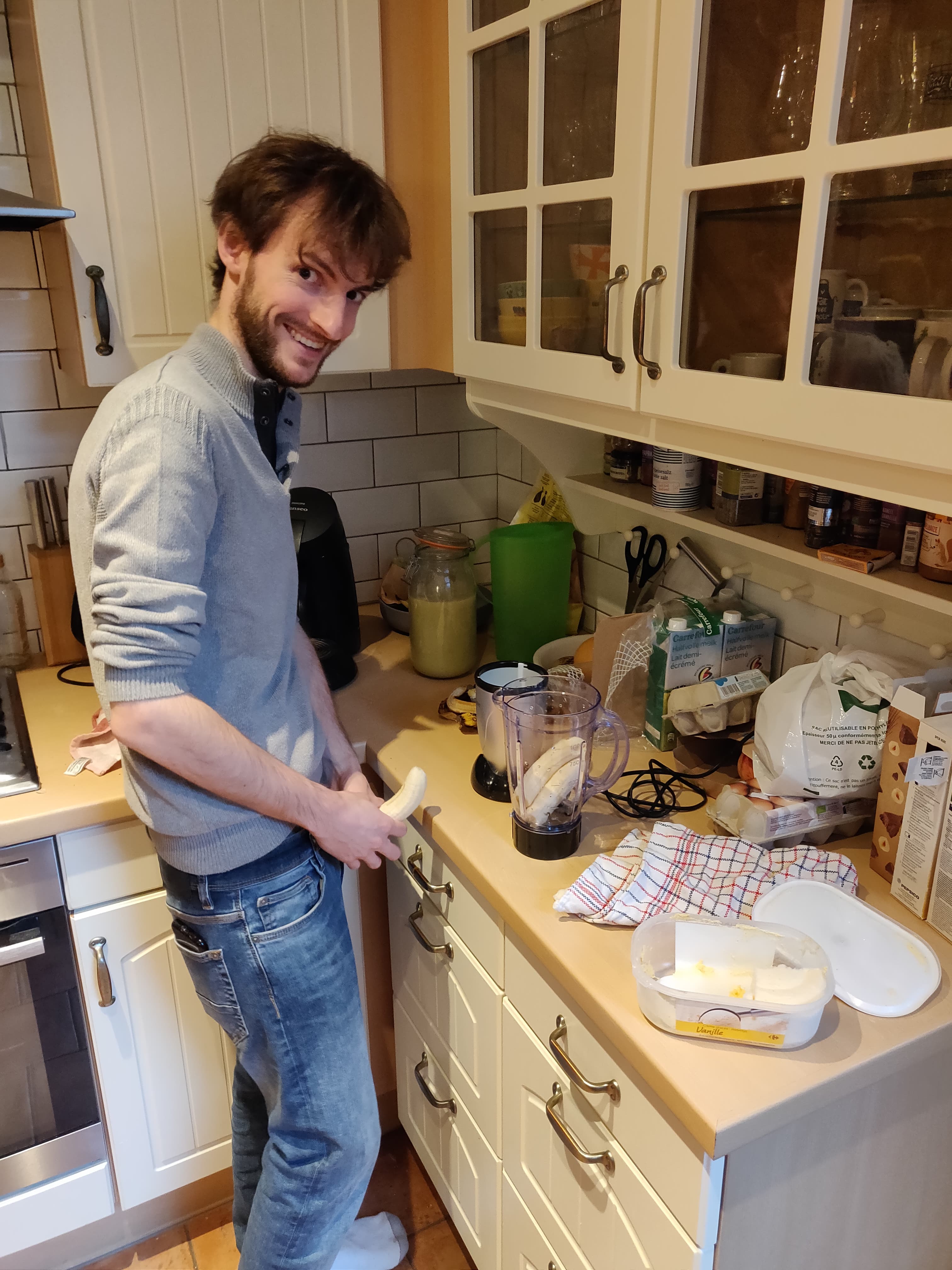 Cognaux me prépare amoureusement un milkshake avec sa banane 🍌