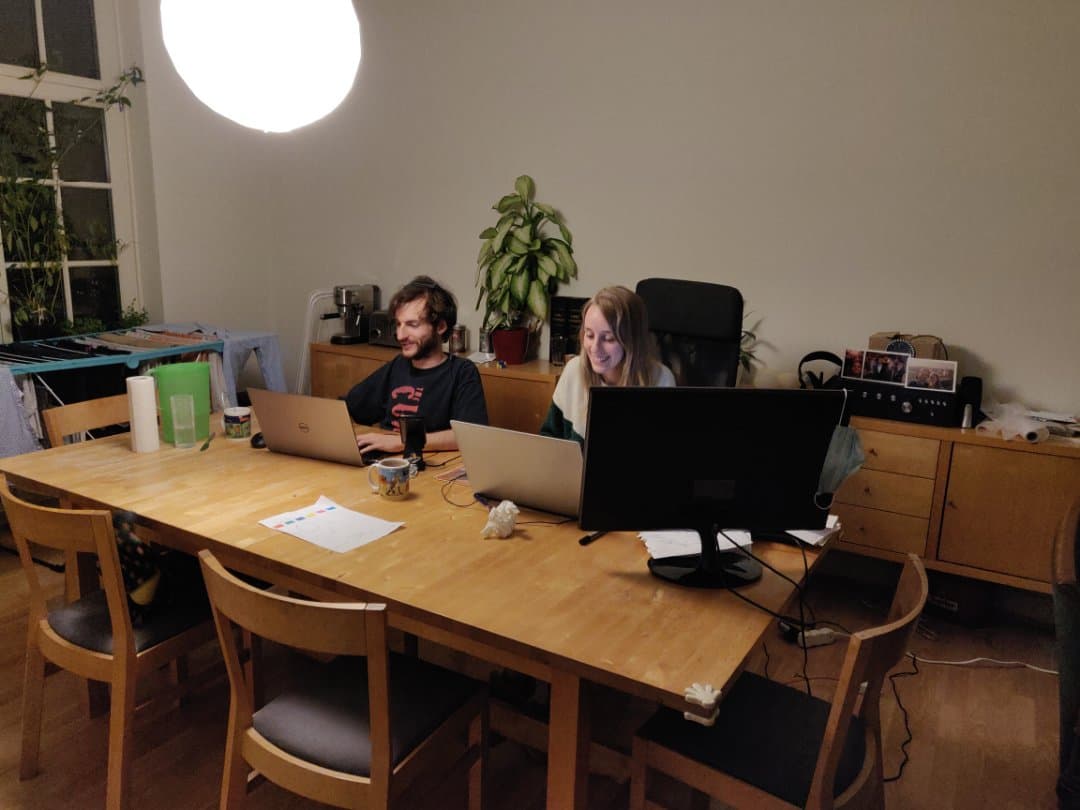 Le salon est devenu un open space de coworking entre Zoé et Eliott